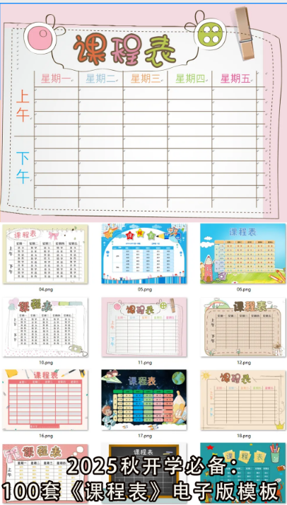 📚2025秋开学必备:100多套《课程表》电子版模板:从幼儿园到高中都适用!一键获取新学期的仪式感!
