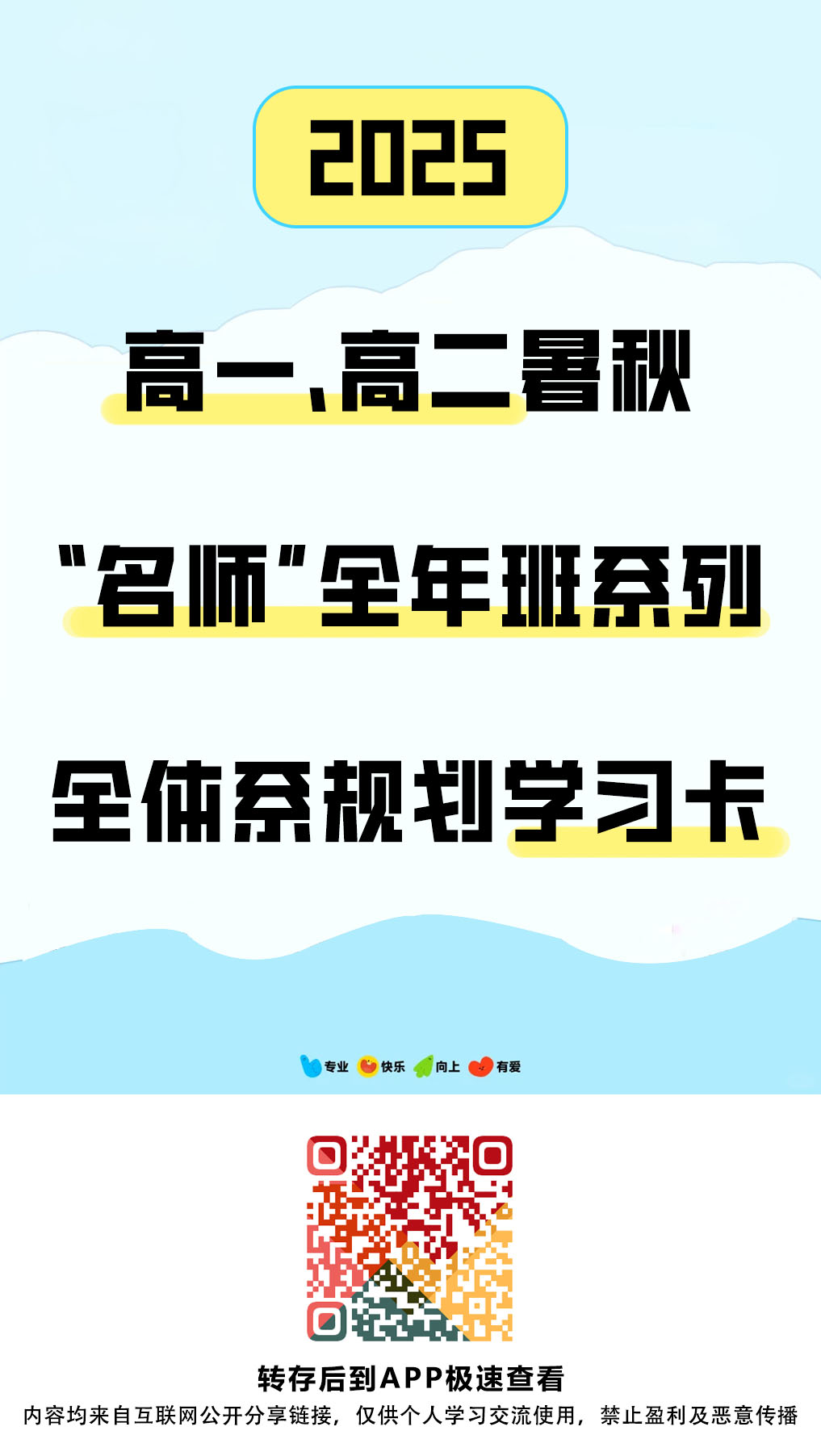 2025高一、高二暑秋“ 名师”全年班系列+全体系规划学习卡
